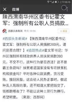 其实,质疑地方政府逼捐的合理性,这是公民对公权力的正常监督行为,并不构成《治安管理处罚法》中的寻衅滋事行为。关于这个问题,已有大量文章分析,不再赘述。我想指出的是,即使不存在强制捐款行为,华州区政府开展募捐活动的合法性也存疑。